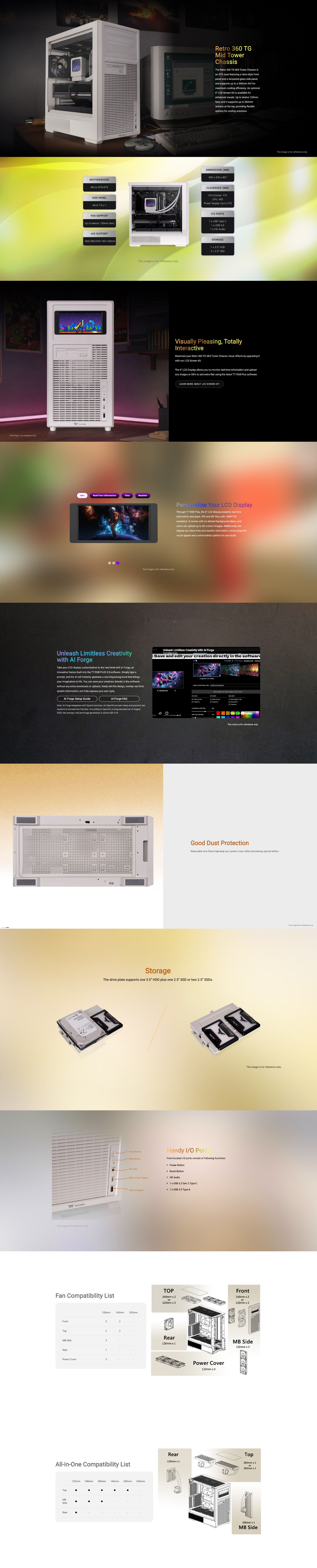 The Retro 360 TG Mid Tower Chassis is an ATX case featuring a retro-style front panel and a tempered glass side panel, and supports up to a 360mm AIO for maximum cooling efficiency.