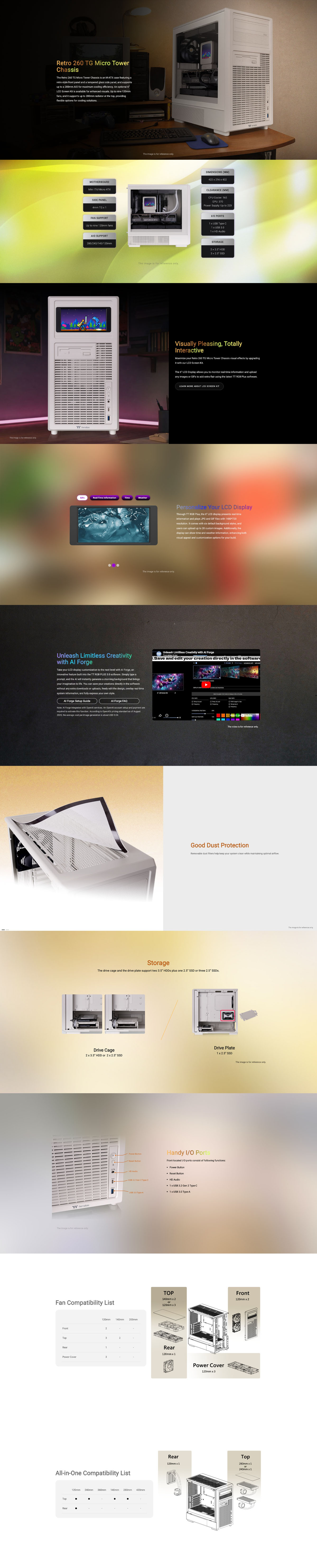 The Retro 260 TG Micro Tower Chassis is an M-ATX case featuring a retro-style front panel and a tempered glass side panel, and supports up to a 280mm AIO for maximum cooling efficiency.