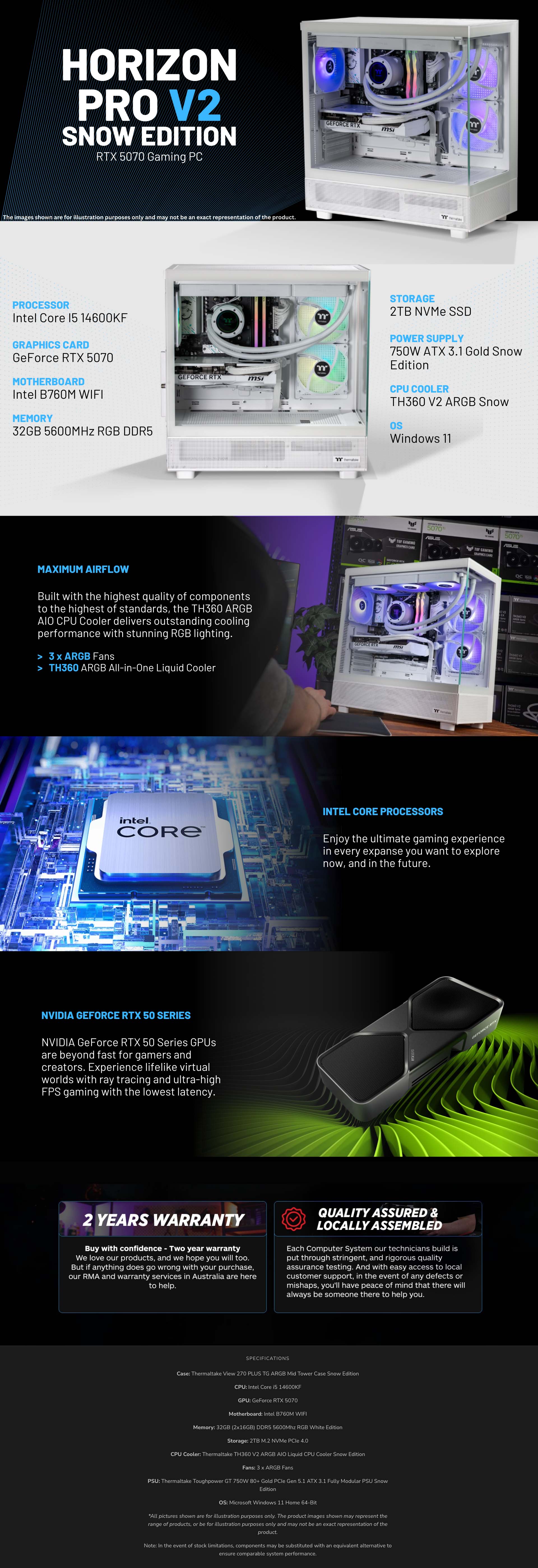 Thermaltake Gaming System Horizon PRO V2 Snow - INTEL 14600KF/ RTX 5070/ B760 WIFI/ 32GB RAM/ View 270 ARGB SNOW