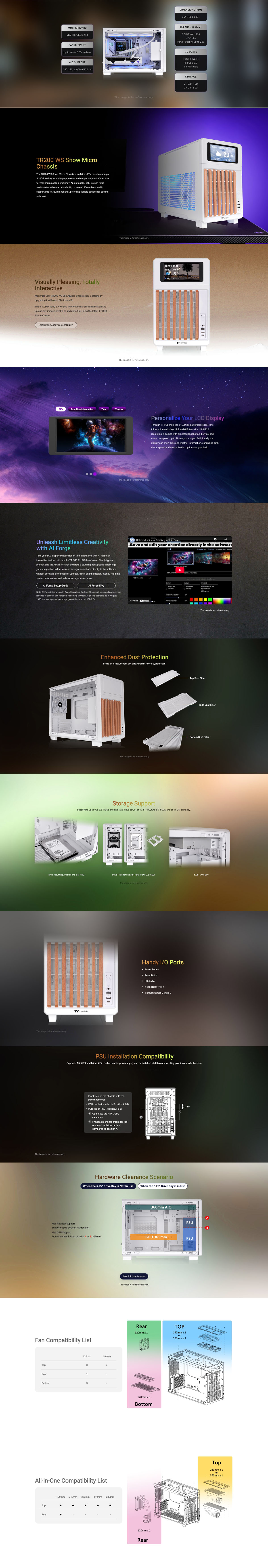The TR200 WS Snow Micro Chassis is an Micro-ATX case featuring a 5.25” drive bay for multi-purpose use and supports up to 360mm AIO for maximum cooling efficiency.
