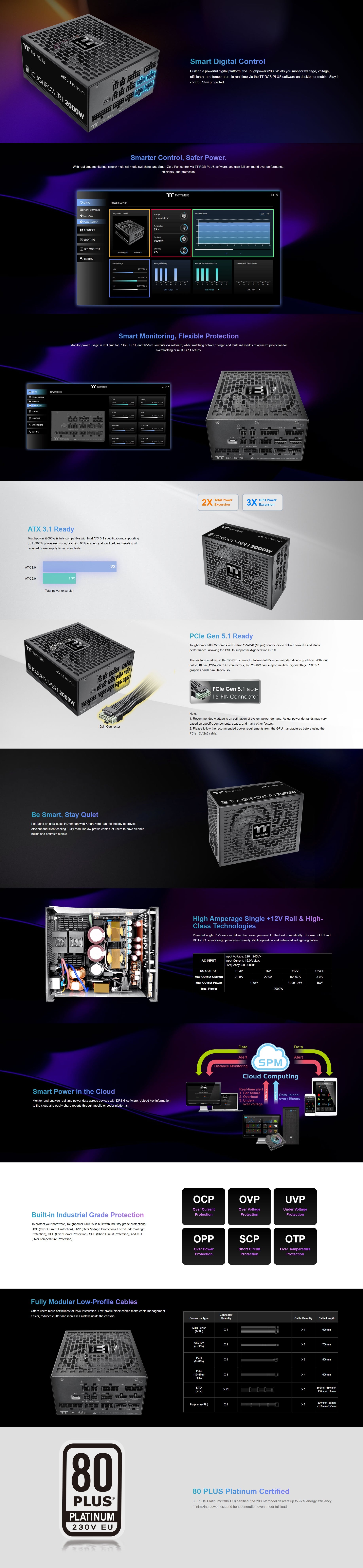 • Thermaltake Toughpower i2000W 80+ Platinum PCIe Gen 5.1 ATX 3.1 Fully Modular Digital Power Supply