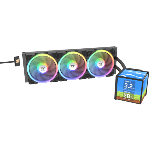 Thermaltake MINECUBE 360 Ultra ARGB with 3.95" Quad-LCD Cube Display AIO Liquid CPU Cooler Black Edition
