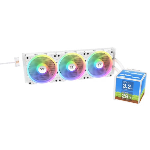 • Thermaltake MINECUBE 360 Ultra ARGB with 3.95" Quad-LCD Cube Display AIO Liquid CPU Cooler White Edition