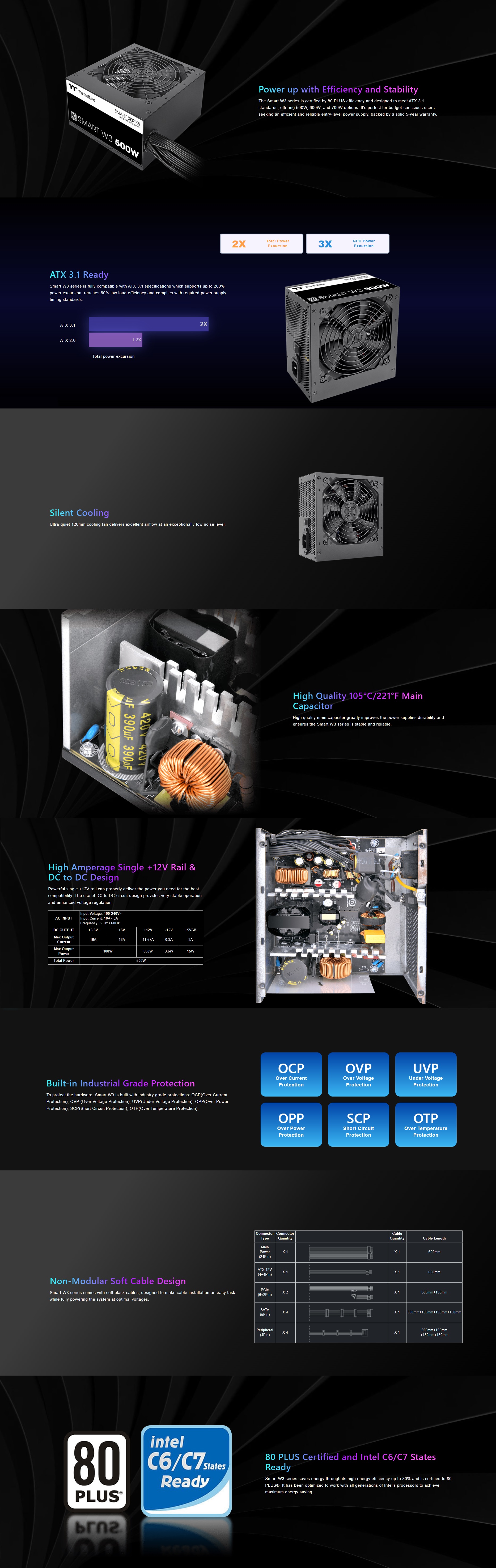 • Thermaltake Smart W3 500W 80 Plus ATX 3.1 PSU