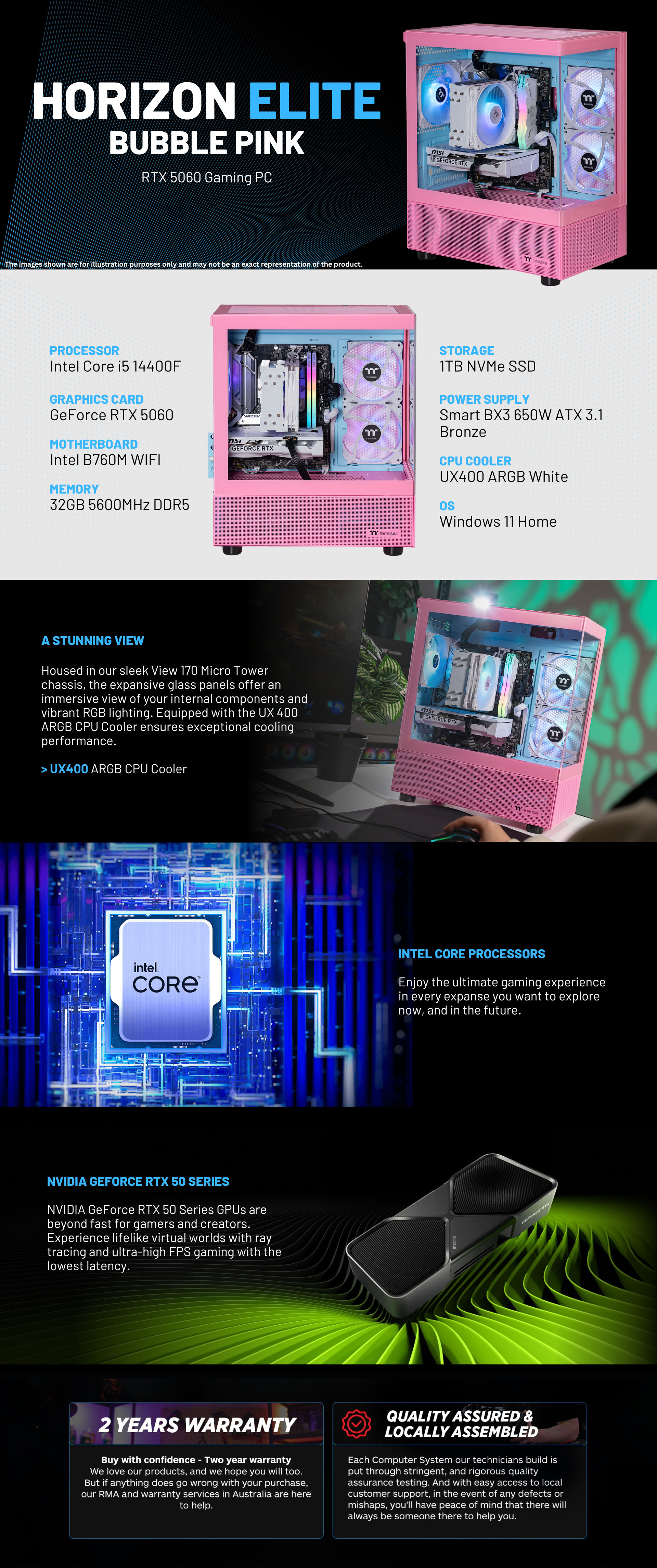 Thermaltake Gaming System Horizon Elite - Intel 14400F / RTX 5060/ B760 WIFI/ 32GB RAM/ View 170 Bubble Pink