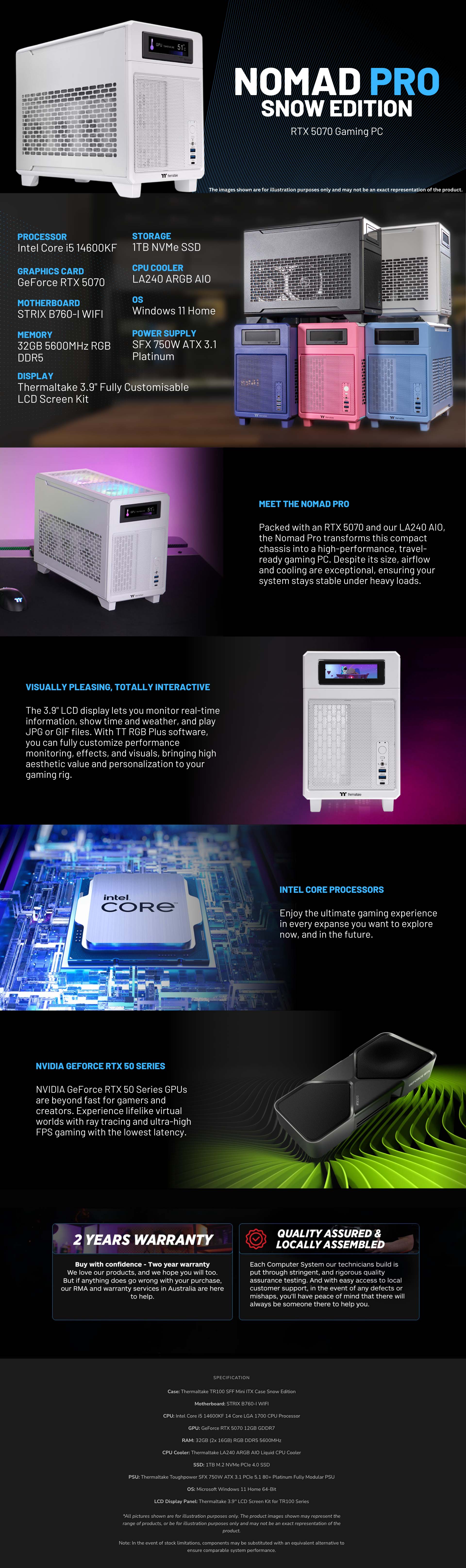 Thermaltake Gaming System Nomad PRO - INTEL 14600KF / RTX 5070/ B760I WIFI/ 32GB RAM/ TR100 Future Dusk